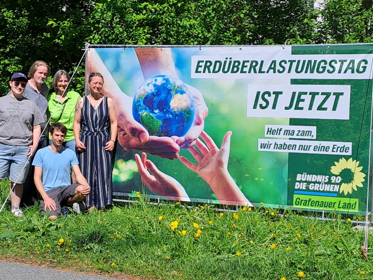 Jeder kann seinen Beitrag dazu leisten, unsere Erde etwas weniger zu belasten. Der 3. Mai - Erdüberlastungstag. Er markiert das Datum an dem die Menschheit alle natürlichen Ressourcen verbraucht hat, die unsere Erde in einem Jahr für uns regenerieren kann. In den letzten Jahrzehnten ist dieser Tag stetig früher im Kalenderjahr eingetreten, was die wachsende Diskrepanz zwischen dem Ressourcenverbrauch der Menschheit und der Regenerationsfähigkeit unseres Planeten verdeutlicht. Dieses Jahr haben wir durch verschiedene Faktoren den deutschen Erdüberlastungstag sogar einen Tag später wie das Jahr davor. Es wäre wünschenswert wenn sich dieser Trend fortsetzen würde. Um diesen wichtigen Tag zu kennzeichnen haben zwei Grünen-Ortsverbände mit Bannern auf den sogenannten "Earth Overshoot Day" aufmerksam gemacht. Im Landkreis stellten Mitglieder der Grünen-FRG in Zenting, Schöfweg, Saldenburg, Thurmansbang, Schönberg und Grafenau die Hinweisschilder auf. „Mit unserer Aktion möchten wir das Bewusstsein für unseren ökologischen Fußabdruck schärfen und aufzeigen, dass wir in Deutschland deutlich über unsere Verhältnisse leben“, erklärt die Sprecherin des Ortsverbandes Sonnenwald-Dreiburgendland Hanna Zintel aus Thurmansbang. "Auch hier im Landkreis Freyung Grafenau könnte so einiges getan werden. Beispielsweise die Reaktivierung der Ilztalbahn als Alternative zum Auto zwischen Freyung und Passau" kommentiert der Ortsverbandsvorsitzende, Felix Löffler aus Schönberg. "Jede Gemeinde kann bspw. in ihren jeweiligen Bauordnungen verankern dass ressourcenschonend gebaut und geheizt wird bspw. Nahwärmenetze." fordert das Grünen Mitglied Uli Matschke aus Saldenburg. "Nur gemeinsam können wir etwas verändern und gerade auch auf Kleinigkeiten kommt es an!“, so Ronja Kölbl, Beisitzerin im Kreisvorstand.